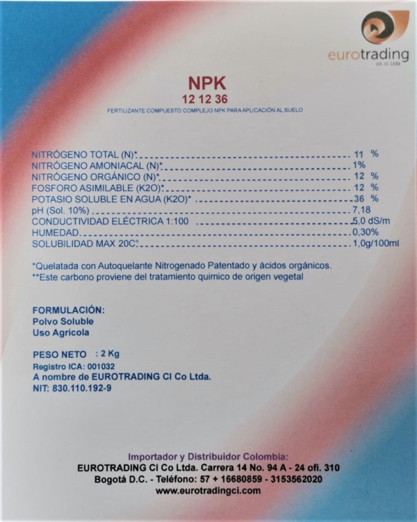 Abono Orgánico NPK 12 – 12 – 36-Ht